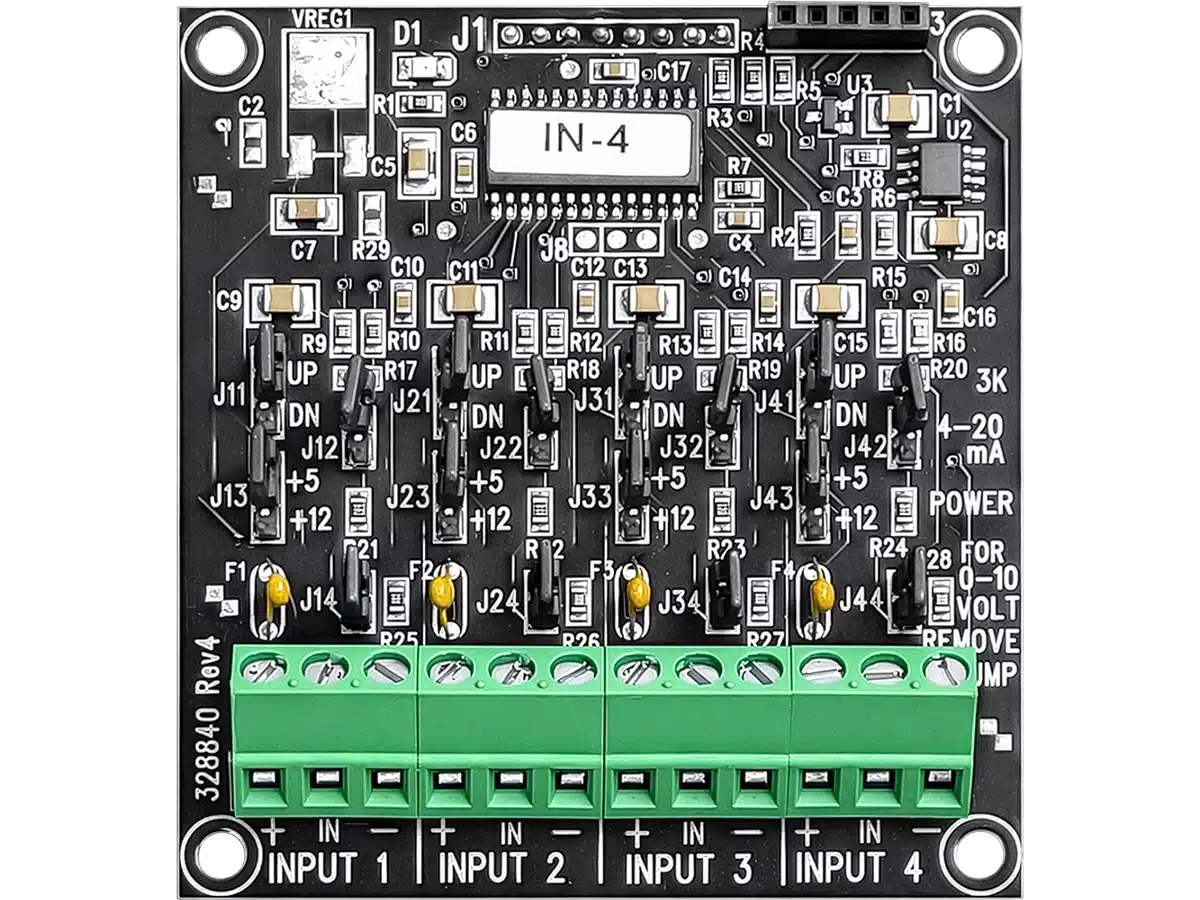 The IN-4 is a four-input Smart Module that precisely measures analog, digital, and pulse/count sensors.